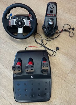 Продаю руль Logitech G27 - полный комплект - руль, педали, кпп и блок питания. Все полностью исправное, работает без нареканий. Из плюсов - убран люфт осевой обоих моторов, что нивелирует люфт "нулевой" зоны Минусы - потертости на руле в месте хвата руками, чисто косметический дефект, на скорость не влияет (на фото места обозначены стрелками). Также кот хотел лишить меня педалей, пытаясь перегрызть провод на педали, но был вовремя замечен и ликвидирован... ликвидирован с места происшествия (ни один шерстяной во время инцидента не пострадал). По факту на проводе чуть повреждена изоляция заводская, замотано место повреждения изолентой, работает все отлично. https://www.avito.ru/moskva/tovary_dlya_kompyutera/igrovoy_rul_logitech_g27_3264586650 На Авито цена 16к, форумчанам - 15к