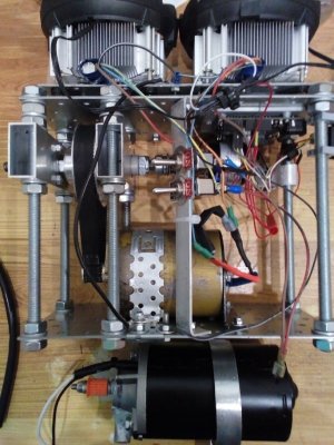 У меня БП аж на 27 вольт, мотор даже нет намека на нагрев. Контроля зарядки у меня нет, просто после БП стоит спарка диодов и после них и перед контроллером в параллель два аккумулятора мотоциклетных соедиенных между собой последовательно. Идея в том что при рекуперации мотором заряд идет на аккумы, а при пиковых токов они помогают БП.