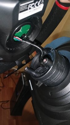 Так дело в том, что когда руль достал из коробки, чтобы его собрать, нужно было воткнуть pin провод, после саму баранку насадить на 3 паза (на правом фото видно их, один паз за провод скрылся) и после винтами, которые шли в комплекте закрутить. Дело в том, что в инструкции совсем по другому написано, там даже крепление другое. Собственно как и у других людей. В видео обзорах такого как у меня тоже не встречал. Там просто руль втыкался и закручивался как раз этой большой гайкой в которой саморез. А мне, по сути, это гайка не нужна. Она просто ничего не держит. Я её закрутил с саморезом, чисто для галочки.