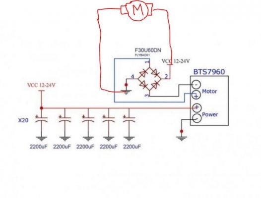 @Sieben Спасибо за наводку, а то я бы долго искал где рассказывалось о постройке моста. Есть вопросы: если мы используем два BTS соединенные в параллель, то нужно собирать два моста? Если мы ставим быстрые диоды с металлическим брюхом спасет ли термопрокладка? не расплавится? Конденсаторы на 35v 4700uf 10шт - нормально будет? (планируется напряжение на блоке питания все таки 24v, а не 12v).