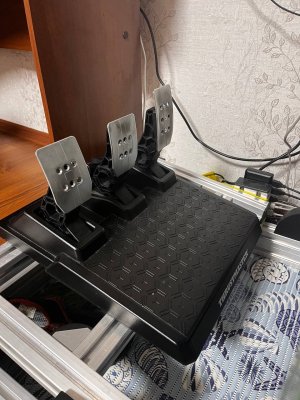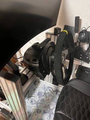 Приветствую форумчане. Решил перейти на некст лвл , в связи с чем пролаю свой текущий комплект. https://www.avito.ru/moskva/tovary_dlya_kompyutera/thrustmaster_t300_pedali_t3pm_2774367108 Доработанная база Т300 (убран штатный вентилятор, установлены 3 мощных). Педали T3PM с модом на пружину тормоза и газа , более тугие. Рулевое колесо замша 350мм Рулевые лепестки от Dim sim