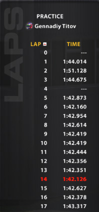 budnikyura Опубликовано 12 декабря, 2012 Поделиться Опубликовано 12 декабря, 2012 Я проехал за 57.907 сек. на базовом сетапе. С самого начала сезона езжу только на базовых. В гонках темп практически не падает. Так что советую не заморачиваться с сетапом и пользоватся baseline -овским. Ссылка на комментарий