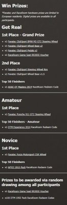 S.Shcherbak Опубликовано 21 февраля, 2015 Автор Поделиться Опубликовано 21 февраля, 2015 Участвовать где? Если в компетишене, то можешь, конечно, он для всех. Попадешь в топ 50 на средней сложности (Amateur) - выиграешь код на DTM Experience 2014. А видео с гонкой я хотел следующим постом, но видать здесь на сайте настройки такие - в одном все получилось. 1 Ссылка на комментарий