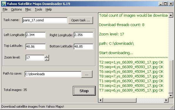 Качнул программу Yahoo Satellite Maps Downloader. Написано просто впишите координаты области и все!