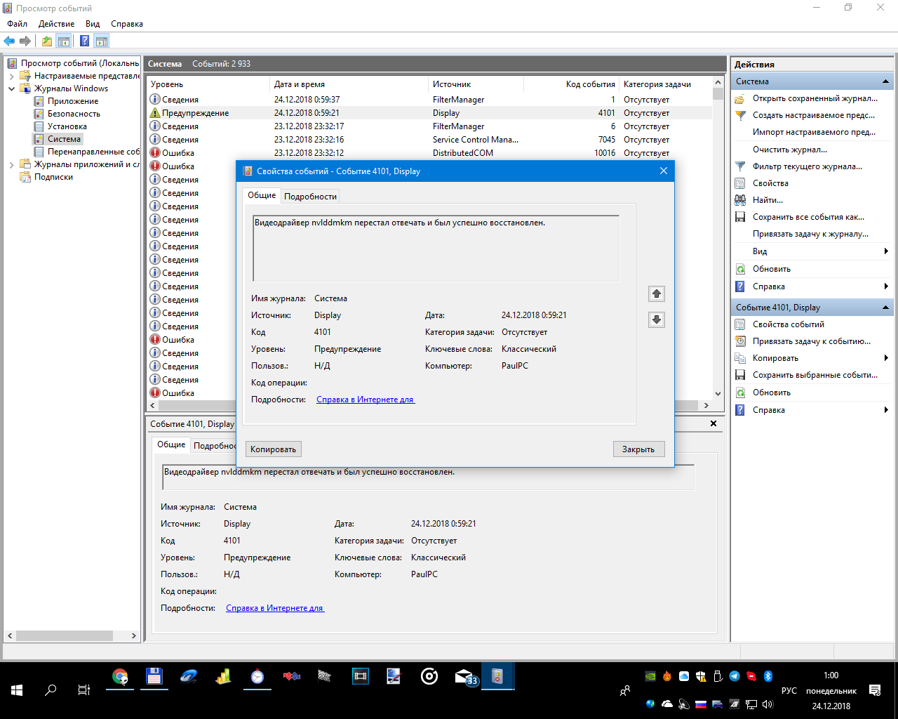 Amarel Опубликовано 23 декабря, 2018 Поделиться Опубликовано 23 декабря, 2018 Так, ну вроде поймал ошибку в момент зависания, вот буквально только что вылетело, и по времени подходит вот это: Что нам это дает, упала значит видюха? Что с ней сделать то? Ссылка на комментарий