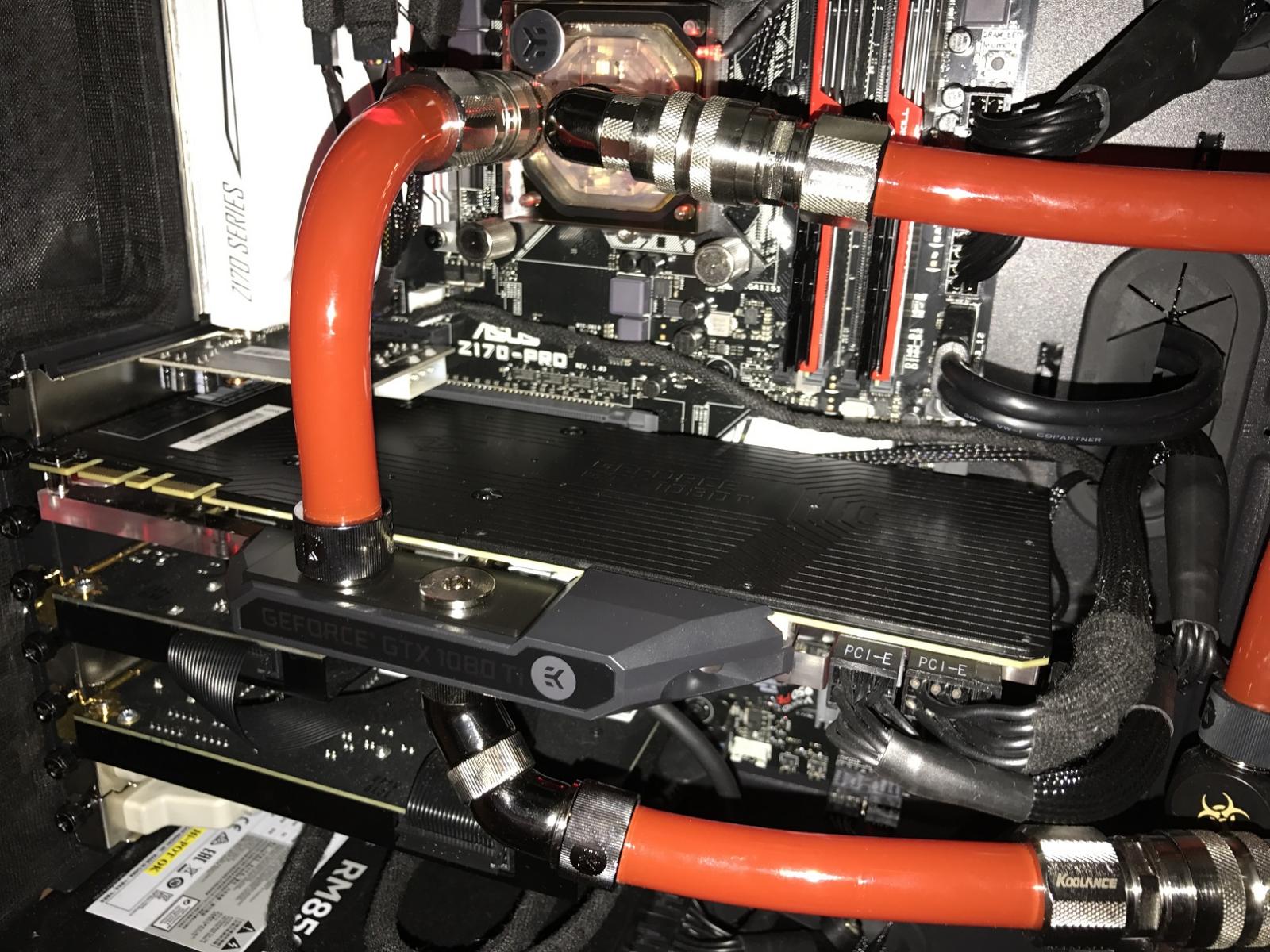 Популярный пост AntonP Опубликовано 20 мая, 2017 Популярный пост Поделиться Опубликовано 20 мая, 2017 (изменено) Установил стойку для трех мониторов на 30х30 профиль в качестве рельсы. Ездит не очень плавно (нужно прилагать усилие), но при желании подвинуть можно. Из минусов - корпуса pg279q и 278q чуть-чуть отличаются расположением vesa крепления, те центральный монитор на 3-4мм выше боковых. Отдельной регулировки по высоте у центрального монитора нет, только все вместе. Претензий к производителю нет - на сайте было указано что мониторы должны быть одинаковыми. Когда они они были на штатных поставках - тоже была небольшая разница по высоте, я думал это подставки немного разные, оказывается просто отштамповка корпусов чуть отличается. Также обновил немного ПК - поставил вторую мору, вторую помпу, заменил водоблоки на мост, врм и процессор одним моноблоком, также поставил в систему четвертый вга-водоблок, на будущее)) И заказал 4-way sli мост правильный. из феншуя еще в кабельный органайзер пучок проводов от ПК к мониторам и периферии затянул )) Изменено 20 мая, 2017 пользователем AntonP 7 Ссылка на комментарий